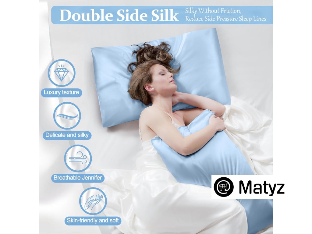 Chceš dopriať svojej pleti aj vlasom trochu luxusu? Náš hodváb je presne ten malý zázrak, ktorý si zamiluješ hneď po prvom dotyku. Extra hladké, jemne lesklé a neuveriteľne mäkké – ako spánok na obláčiku. Vďaka vysokej gramáži 22 momme chráni tvoju pleť pred jemnými linkami, akné aj rannými otlakmi, podporuje účinky kozmetiky a vlasy necháva hebké a bez krepovatenia. Navyše je hypoalergénna a odporúčaná dermatológmi… jednoducho starostlivosť, ktorú si zaslúžiš.