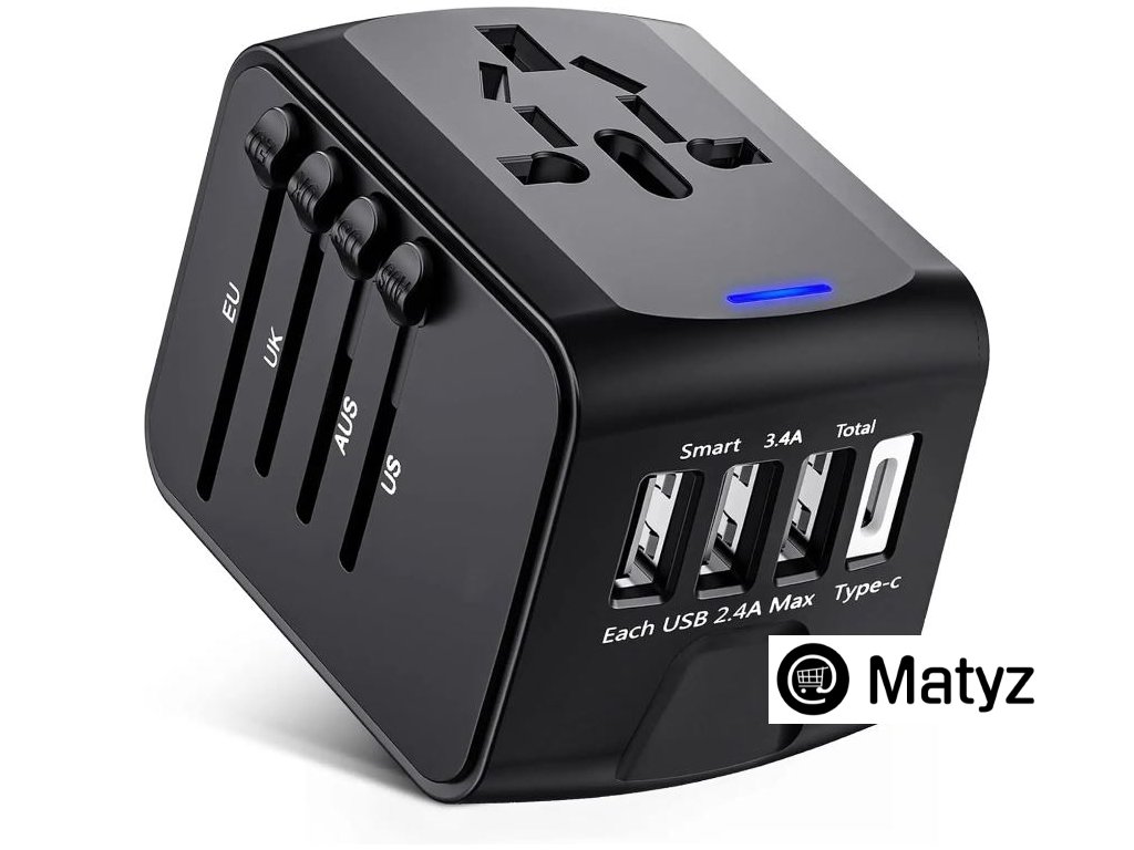 Celosvetový cestovný adaptér (vhodný pre viac ako 210 krajín) : formáty zástrčiek: EU, UK, USA/Japonsko, Austrália