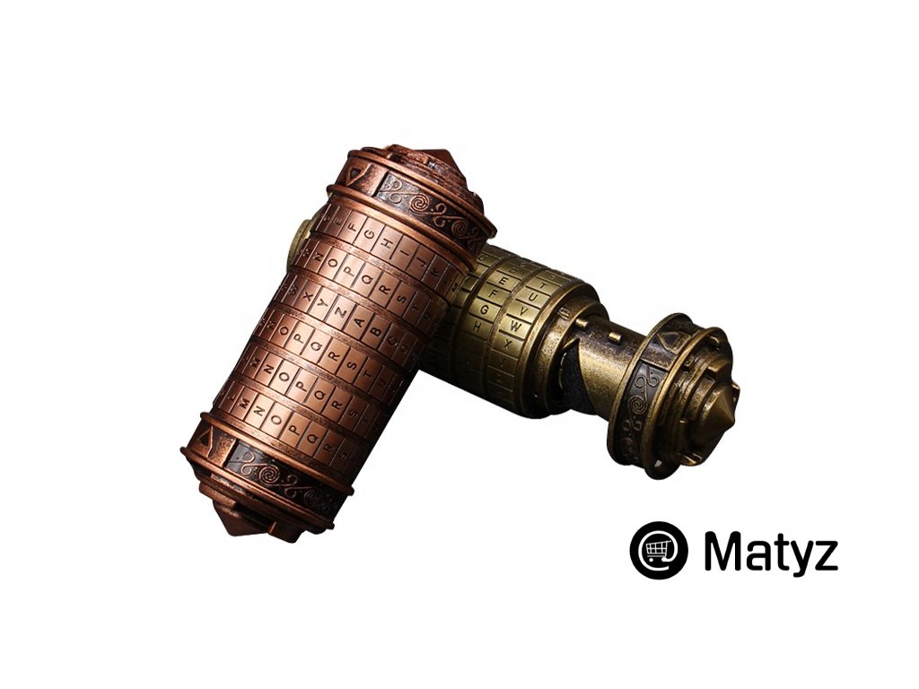 CRYPTEX je celokovový, detailne spracovaná replika z filmu, je potiahnutá starou patinou a veľkosť vnútorného priestoru na vloženie darčeka je 8cm x 2,7cm.